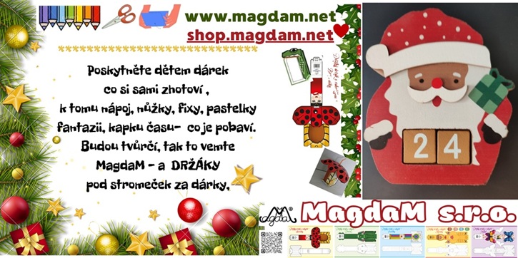 Firma MagdaM tímto děkuje svým klientům a i nadále si bude nesmírně vážit jakýchkoliv vašich iniciativit nákupních ( k tomu poslouží i náš firemní E-SHOP), děkuje spřáteleným firmám za obchodně-prodejní navázané vztahy a tím podávanou podporu ostatním. Díky takové součinnosti se můžeme více zaměřit na nové a další podpůrné vzory a druhy s vývojem a to i ve spec. úpravách. Byly vyvinuty jako základní standard u tisků 4v1- nejen pro menší předškolní, školní dětí k udržování základů a podávání prvotní nauky s prvky podpory : za motoriku rukou, grafomotoriku, za nauku přesného střihu, k potřehu i logice, za prostorové vidění aj. námi vložené základy nauky, aby posloužily k rozvoji, pobavení a radosti z vlastní tvořivosti za kreativitu a k užitku u skládanky DRŽÁKU s r. A ty pevnější zhotovené z plastu (papíru) by se u vás mohly zaujmout aby se objevily v každé domácnosti jako mobilní -přenosný, přitom i bezpečný nosič běžných nápojových obalů, kdy si je oblíbíte, mohou vám zajistit oporu a lépe se vám držet, zadají podporu i užitnost nejen k lepší sebeobsluze, v udržení motoriky aj. Jsou zcela bezpečnými d r ž á k y s rukojetí - nosiči nápoj. obalů, potravinářských i průmyslových.