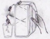 vloží se značné množství různorodých obalů ( ohýbané části nosiče usnadní přizpůsobení velikosti při obtažení - zvětšení/zmenšení do délky i výšky) - pevný výlisek držáku neumožní obměny rozměrů
